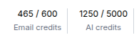 There are two types of credits in our app: Email credits and AI credits (see the example below)